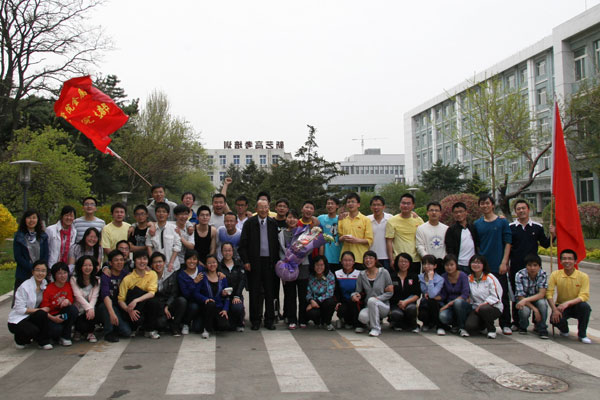2011年耀彩网举办“五四”环所长跑比赛。青年学生和职工与胡壮麒院士合影