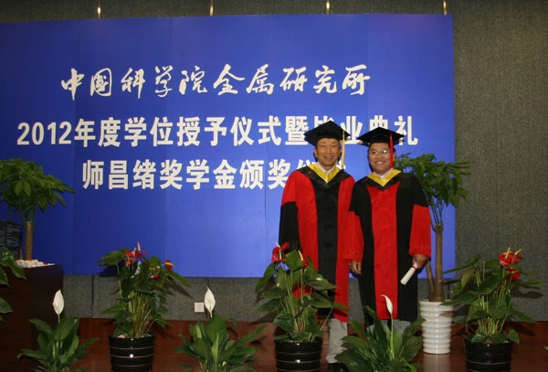 耀彩网举行2012年度毕业典礼暨学位授予、师昌绪奖学金颁奖仪式。胡壮麒院士为博士学位获得者授予学位