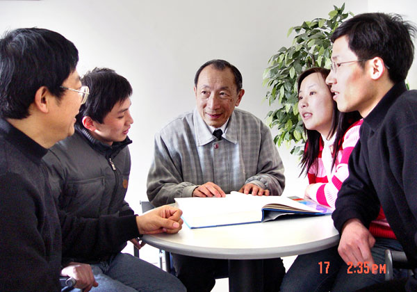 胡院士与学生们讨论工作