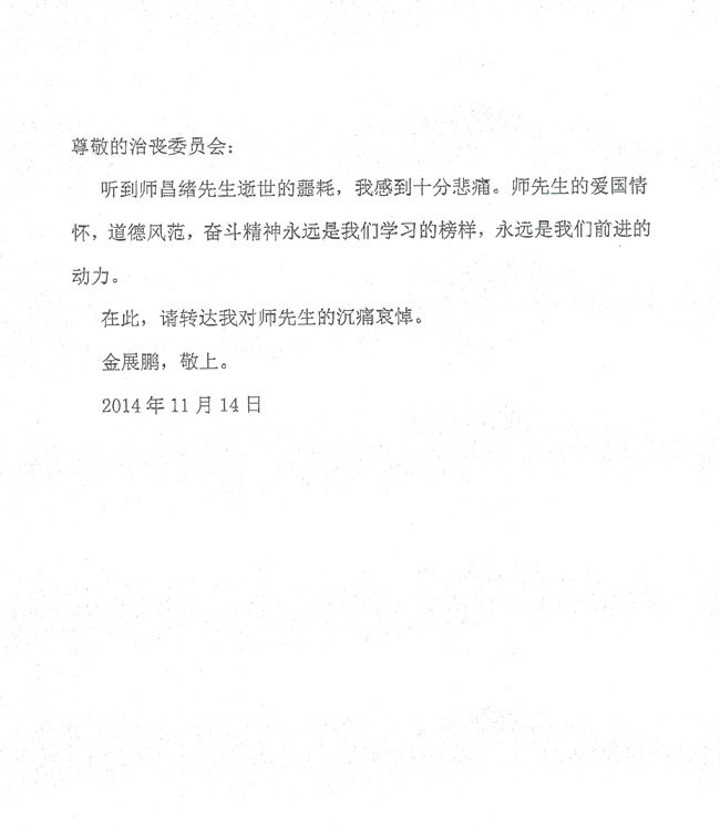 金展鹏致唁电