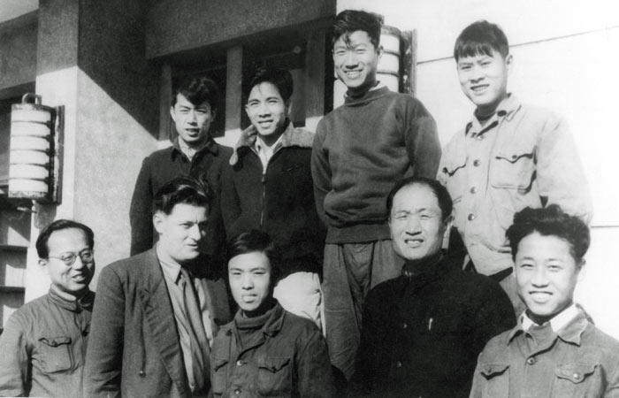 捷克米谢克博士(前左二)在葛庭燧(前右二)指导下来我所作内耗研究/钱知强(后排右一)、周本濂(后排右二)