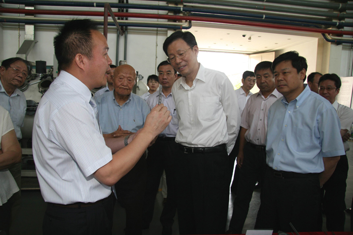 2010年6月23日,科技部党组书记、副部长李学勇视察耀彩网。图为谭若兵副所长汇报我所科研进展。