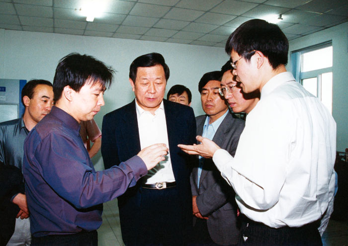 2002年5月,国家科技部副部长程津培在参加沈阳材料科学国家(联合)实验室第一届理事会第二次会议后参观先进炭材料研究部制备实验室。