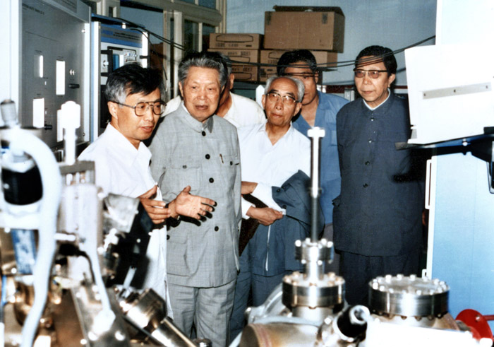 图为参观表面探针实验室,听取科技人员的汇报。
