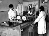 1955年7月李薰所长向巴尔金院士介绍高真空定氢的工作情况