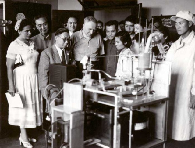 1955年7月李薰所长向巴尔金院士介绍高真空定氢的工作情况