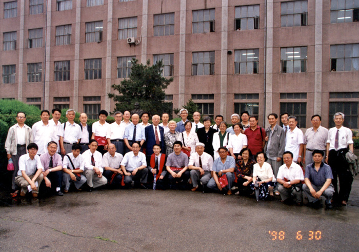 1998年6月所庆四十五周年庆祝活动--部分参加所庆活动的所友及职工在新大楼前合影。
