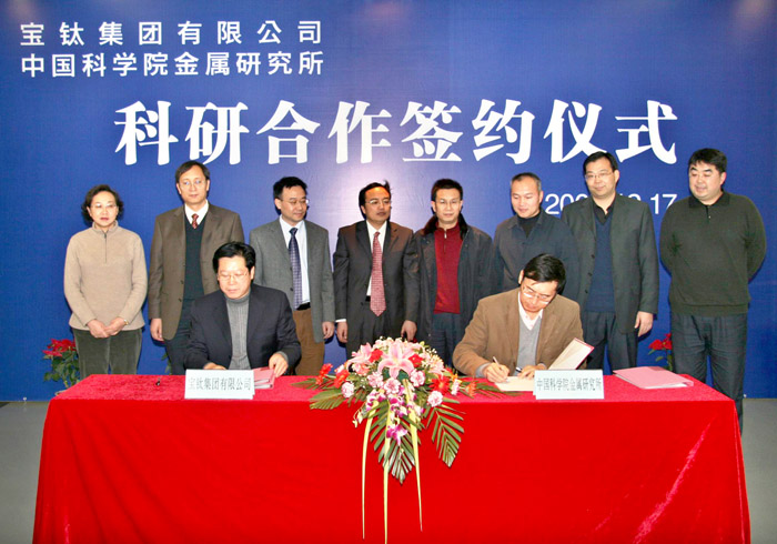 2007年12月17日由宝钛集团有限公司与我所共同发起建立的“中国科学院耀彩网—宝钛集团有限公司新型钛合金材料技术中心”科研合作签约仪式在我所举行。