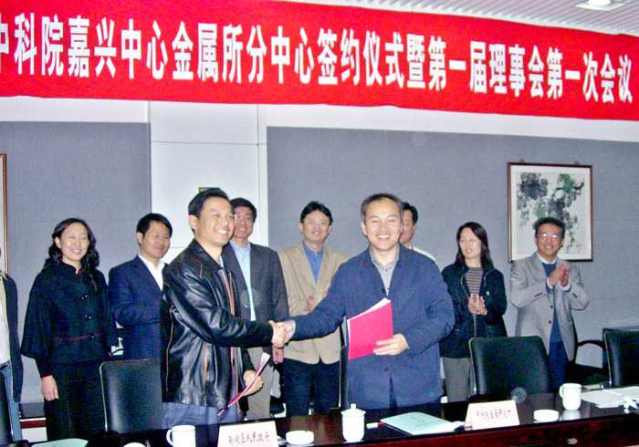 2007年11月16日中科院嘉兴中心金属材料应用工程中心在嘉兴正式成立。谭若兵副所长代表耀彩网与嘉兴市政府、嘉兴市科技城签订了《共建中科院嘉兴中心金属材料应用工程中心协议》并任理事会副理事长,熊天英研究员被理事会聘任为中心主任。